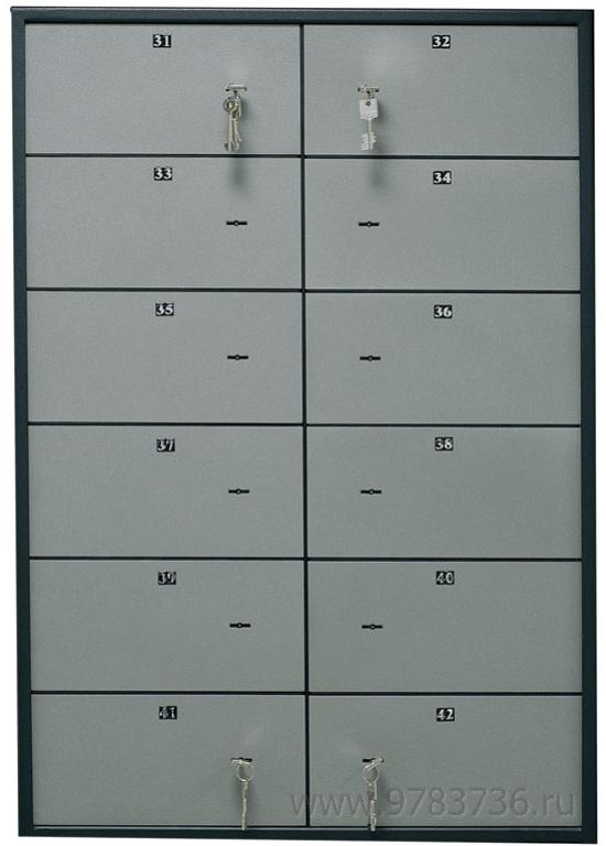 Депозитные ячейки DB-12S на двенадцать ячеек, предназначены для оборудования хранилищ в банках и камер хранения в гостиницах. Толщина двери ячейки 3 мм. Порядок нумерации ячеек указывается при заказе. Депозитные ячейки комплектуется двухключевыми замками с одной скважиной KABA MAUER (Германия), с перенастраиваемым замком банка(возможна установка на заказ замков с двумя личинками на ячейку). Возможна комплектация ячеек пластиковыми кассетами с устройством для опечатывания. Цвет двери нержавеющая сталь.