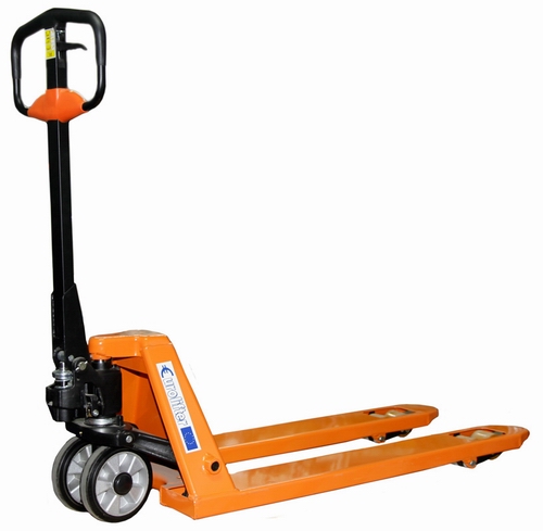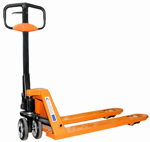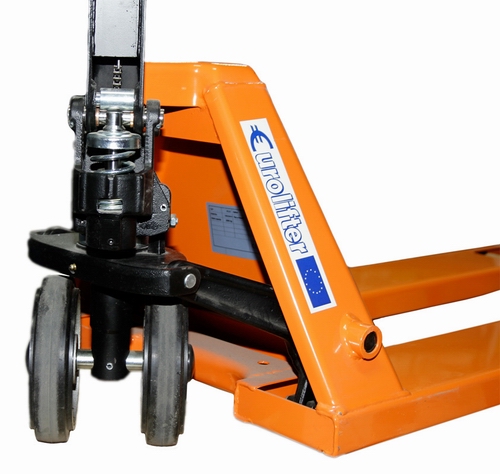Тележка ручная гидравлическая Eurolifter EL-25 длина вил 1,15 м надежная тележка для перевозки различных грузов на паллете весом до 2,5 тонны. Все вращающиеся узлы снабжены пресс-масленками. Хромированные опорные и соединительные втулки обеспечивают высокие ходовые качества и длительный межсервисный период. Уникальная конструкция клапана-распределителя, гарантирующая сверхчеткую работу гидравлической системы. Эргономичная обрезиненная ручка для работы при низких температурах. Наличие накатного ролика на концах вил, служащее для преодоления незначительных препятствий и облегчающее работу на неровных полах.