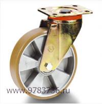 Колесная опора поворотная большой грузоподъемности Tellure Rota 657602. Колесо из полиуретана, алюминиевый диск. Шариковый подшипник расположен в углублении, выдавленном под прессом. Ось на основе стальной втулки с болтом и гайкой. Вращающаяся опора с пластиной крепления. Пластина, беговая дорожка подшипника и вилка сделаны из оцинкованной стали путем штамповки. Вращающийся момент обеспечен двойным подшипником в смазке. Пылезащитная прокладка из нейлона.