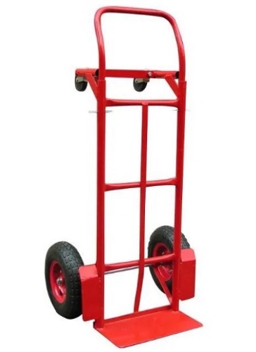 Универсальная грузовая тележка трансформер. На этой тележки трансформер можно перемещать груз как на двух колесах так и на четырех колесах используя ее как платформенную тележку. Основные колеса тележки пневматические камерные, диск-металл, вспомогательные поворотные пластик.