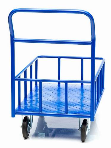 Тележка платформенная с бортиком по кругу предназначена для перевозки грузов на складе, в офисе, в магазине. На данной тележке удобно перевозить как крупногабаритный так и мелкий груз, например коробки. Платформенная тележка с бортиком очень надежная так как имеет полностью сварной корпус и не съемную ручку. Бортик не съемный выполнен из стали, высота бортика 150 мм. Комплектуется колесами производства Tellure Rota диаметром 150 мм, материал колеса высококачественная резина, диск-металл. Вес тележки 25 кг.