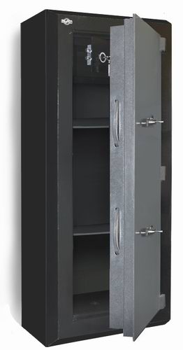 Дверь сейфа оборудована высоконадежной трехсторонней дисковой системой запирания, неподвижными ригелями в сторону петли и дополнительным устройством блокирования двери при попытке взлома