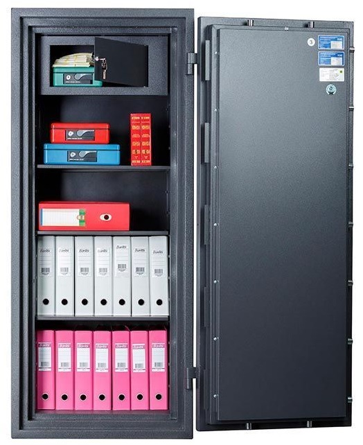 Сейф огневзломостойкий Valberg Гарант Евро 165T EL Сейф для офиса, банка с защитой от взлома и пожара. Производитель сейфа Valberg, внешние размеры (ВхШхГ) 1652х701х580 мм, внутренние размеры (ВхШхГ) 1458х526х387 мм, вес 490 кг, объем 297 л, запирающая система электронный кодовый замок. Гарантия 5 лет.