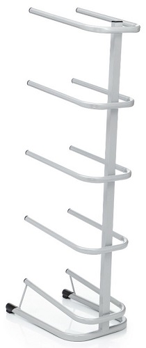 Стеллаж-стойка СВ-4 серая для бутылей 19 л Стойка-стеллаж под бутыли объемом 19 литров. Изготовлена из стали, цельносварная. На стойку можно установить до 4 бутылей. Габаритные размеры (ВхШхГ) 1060х350х500 мм. Вес 6 кг. Цвет серый.