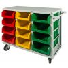 Мобильный стеллаж для ящиков, грузоподъемность 400 кг, габариты (ШхГхВ) 1150х700х1500 мм. Комплектация: пластиковый ящик V-1 100 шт, пластиковый ящик V-2 42 шт, пластиковый ящик V-3 30 шт. Возможно сделать любую комплектацию.